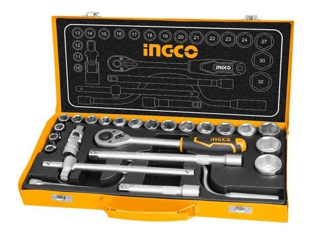 JUEGO DADOS TUBO LLAVE 24 PCS 1/2" CRIQUE + VALIJA METALICA INGCO HKTS0243