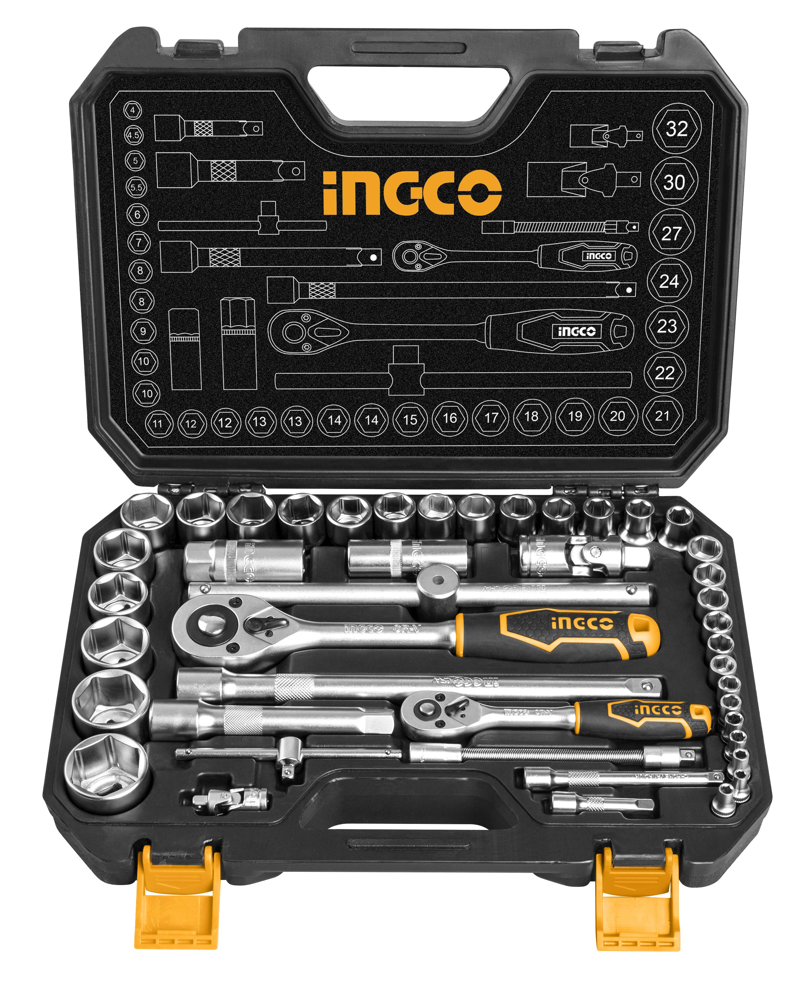 JUEGO DADOS TUBO LLAVE 44 PIEZAS CRIQUE 1/2 Y 1/4 METR. Y PULG INGCO HKTS42441