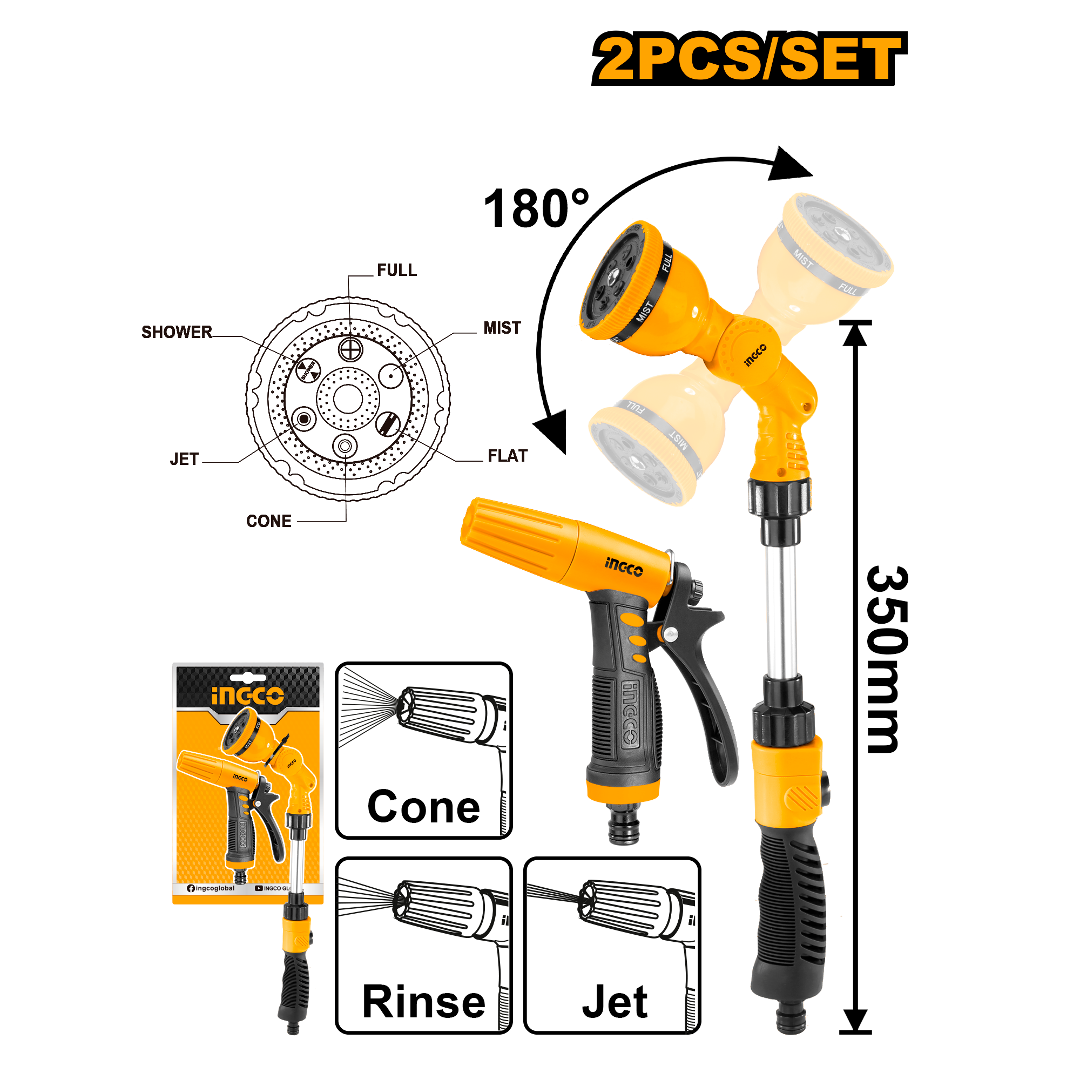 KIT RIEGO EXTENSIBLE 180°+ PUNTERO HWSK0201 INGCO
