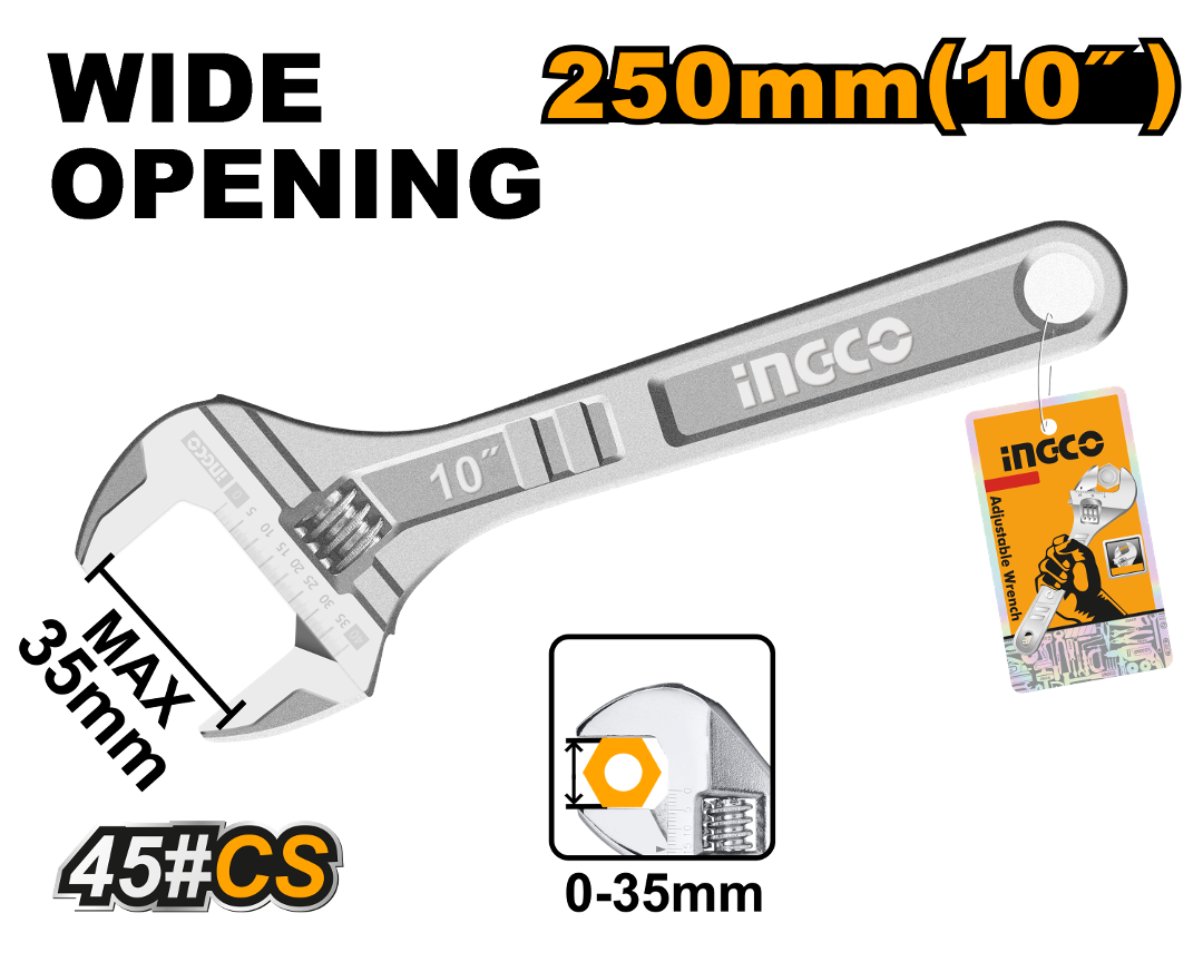 LLAVE FRANCESA AJUSTABLE 10"(25CM) INGCO HADW131102 ABRE 30MM