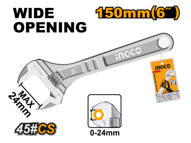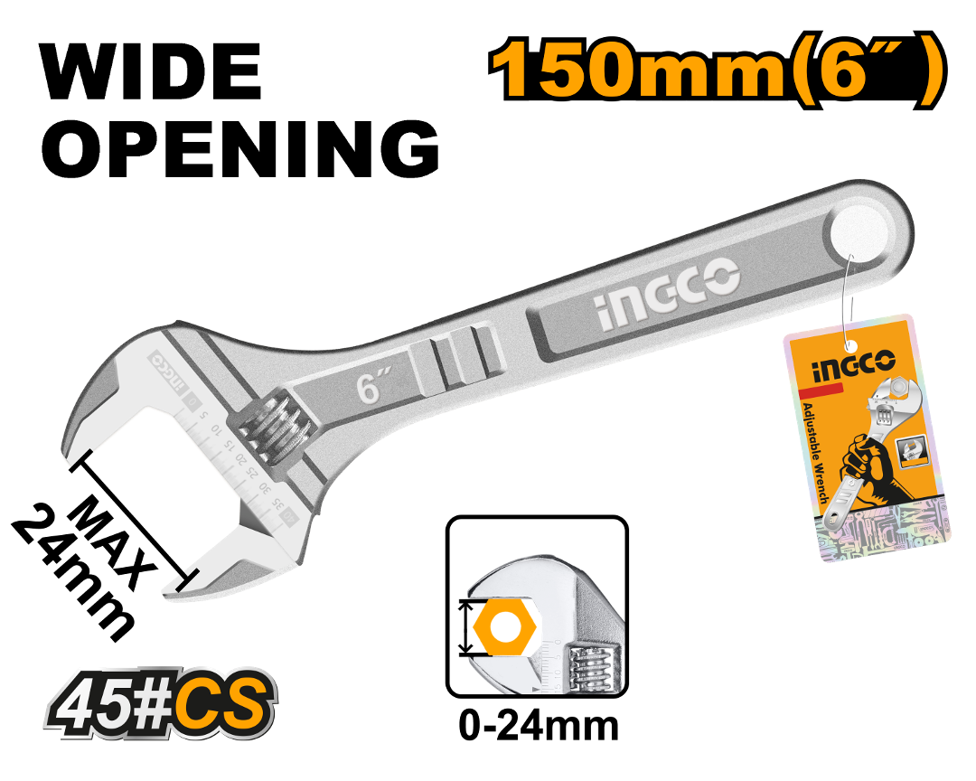 LLAVE FRANCESA AJUSTABLE 6"(15CM) INGCO HADW131062 ABRE 0 A 19.2MM