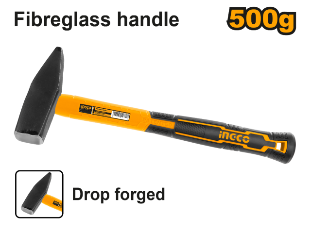 Peso: 500 g Cabeza de martillo forjada Tratamiento térmico, acero al carbono 45 # Mango de fibra de vidrio estilo INGCO
