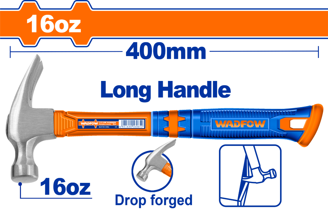 MARTILLO UÑA 450G MANGO LARGO 400MM FIBRA WADFOW WHM336L