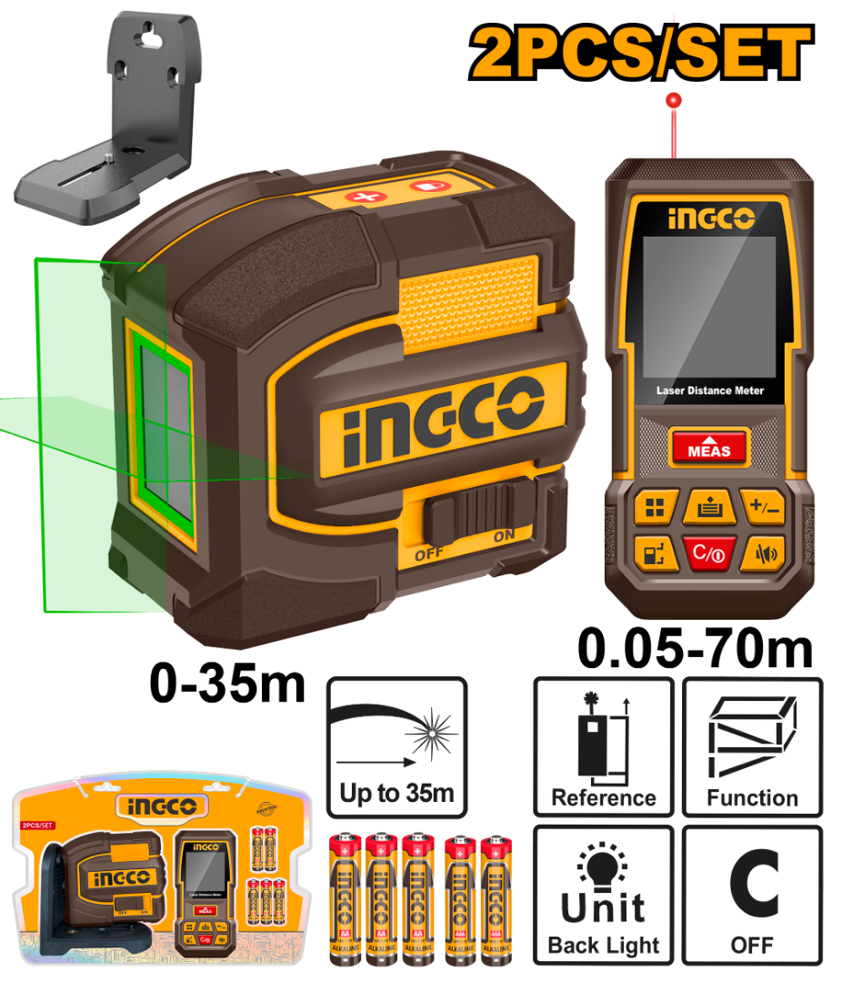 SET MEDICIÓN NIVEL LÁSER VERDE 35MTS (HLL156601) + MEDIDOR DE DISTANCIA 70MTS (HLDD0708)