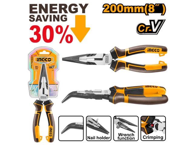 PINZA PUNTA DOBLADA 200MM 8" CR-V