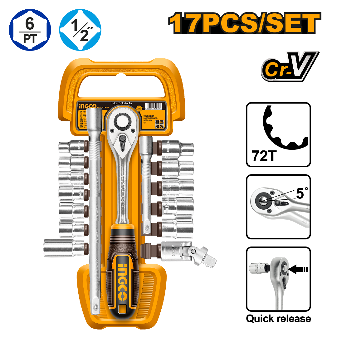 SET 17PCS CRIQQUE + DADOS 1/2" CR-V INGCO HKTS12171