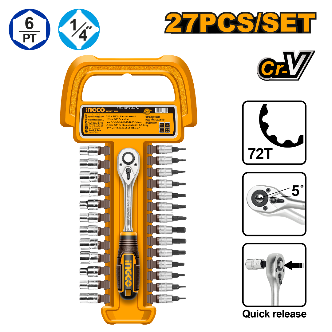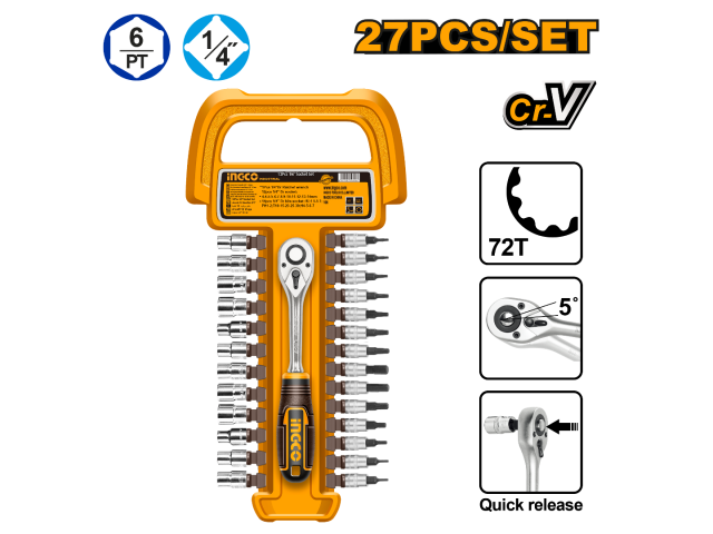 SET 27PCS CRIQUE + DADOS Y PUNTAS INGCO HKTS14271