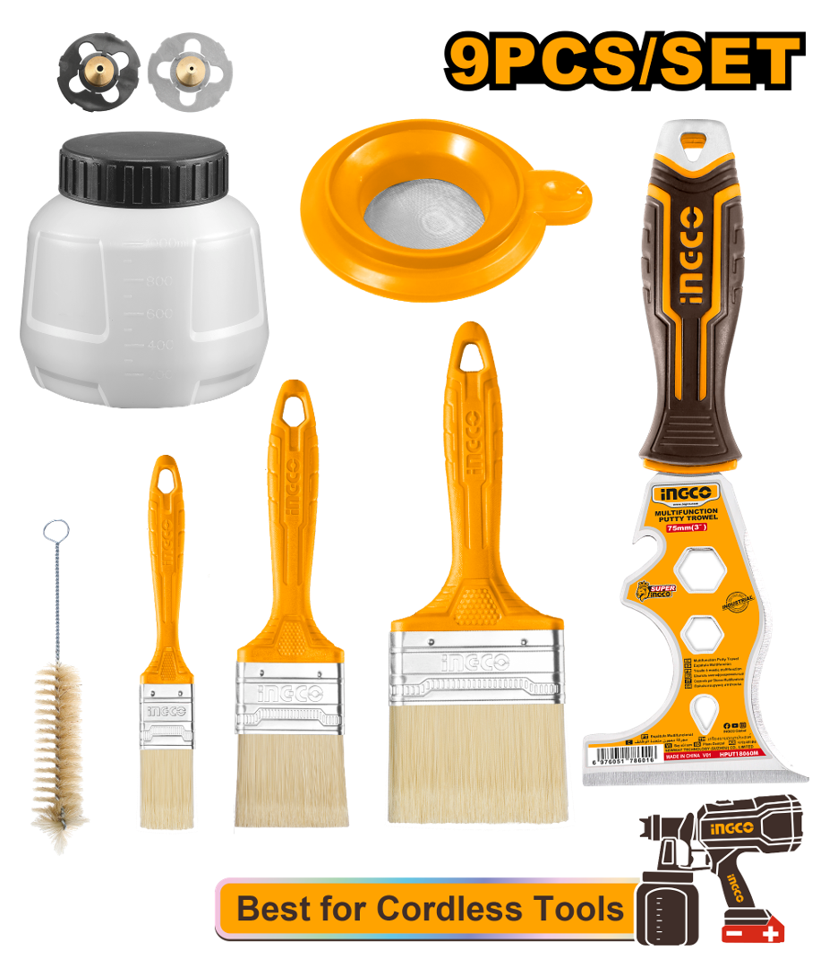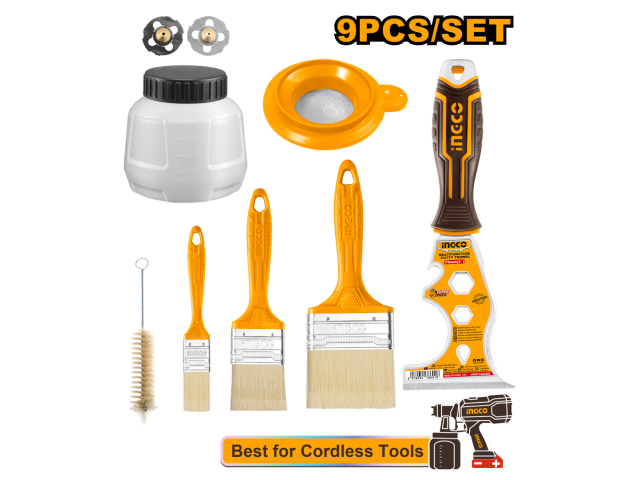 SET 9PCS PINTURA TACHO P PISTOLA + HERRAMIENTAS DE PINTAR INGCO AMGF0702