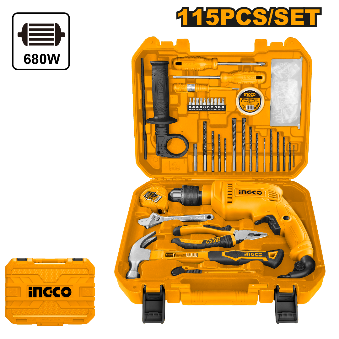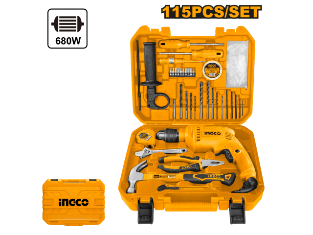 SET TALADRO 680W + HERRAMIENTAS + VALIJA INGCO