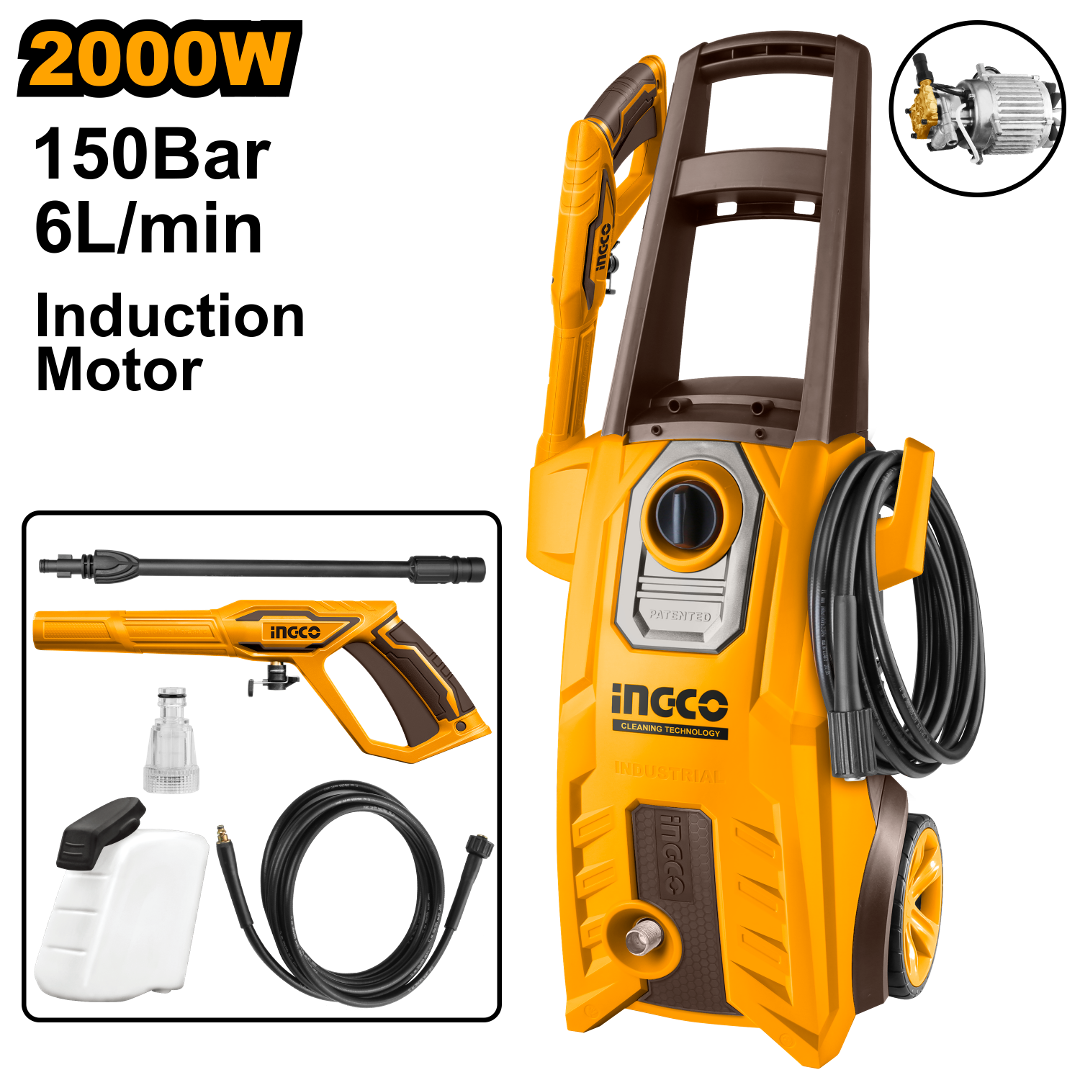 HIDROLAVADORA 150BAR 2000W MOTOR INDUCCION INGCO HPWR20008