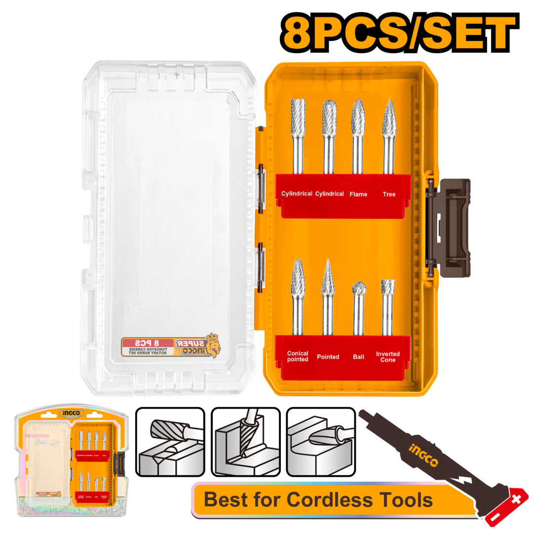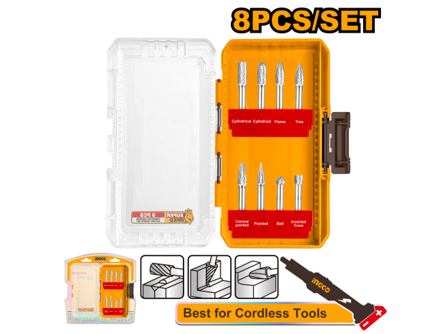 SET X 8 FRESAS ROTATIVAS CARBURO TUNGSTENO 6MM INGCO AKDL10801