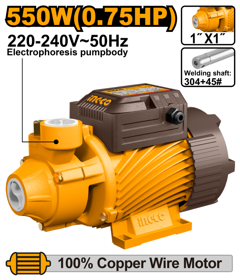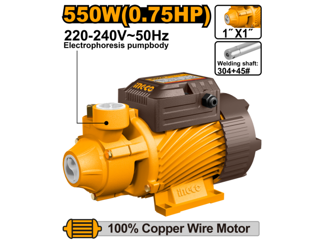 BOMBA PERIFERICA 3/4HP 550W ALTURA 45M CAUDAL 45L/MIN 220V INGCO VPM55068