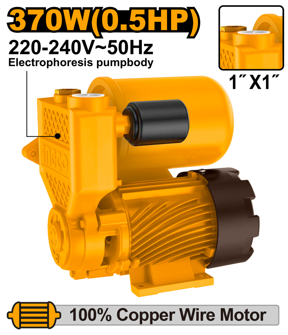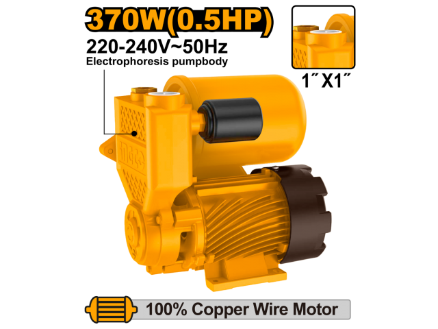 BOMBA PERIFERICA AUTOCEBANTE 0.5HP 370W C/TANQUE 2L PRESION 32M CAUDAL 35L/MIN MOTOR COBRE 220V INGCO VPA37068