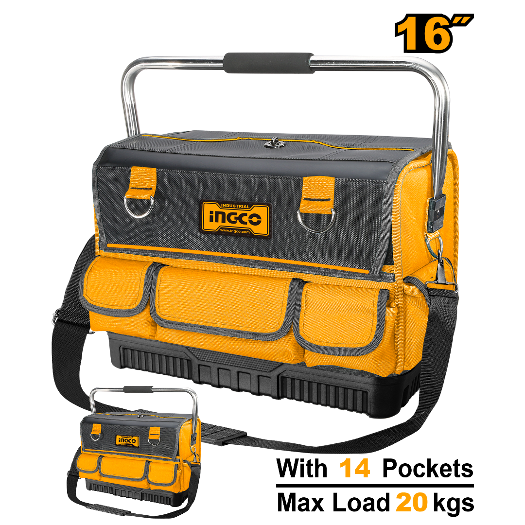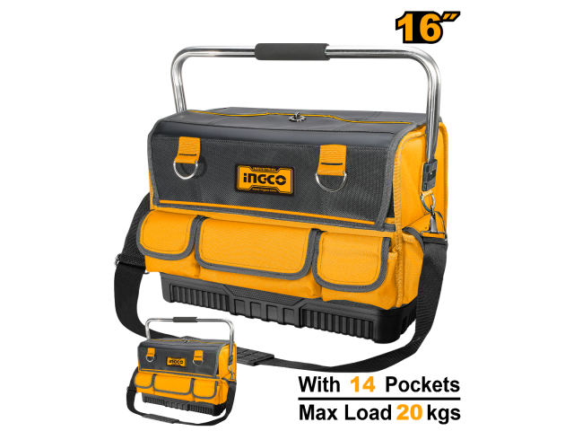 BOLSO DE HERRAMIENTAS CON BASE REFORZADA 16" CON 14 BOLSILLOS - 20KG - HTBGL05 INGCO
