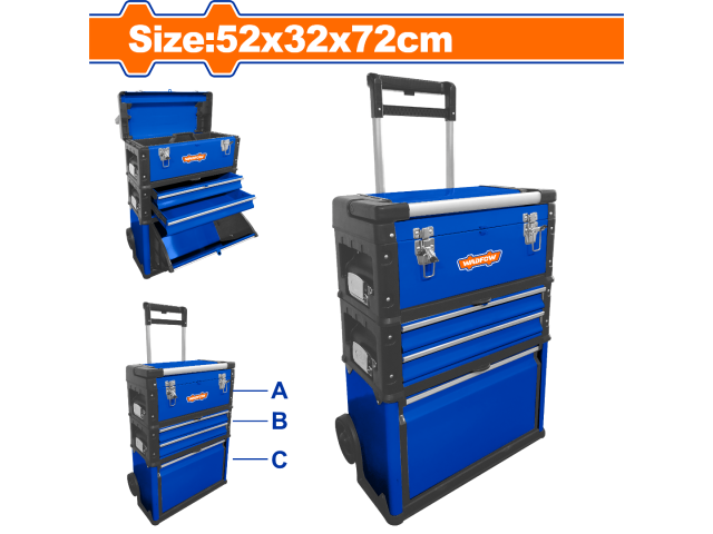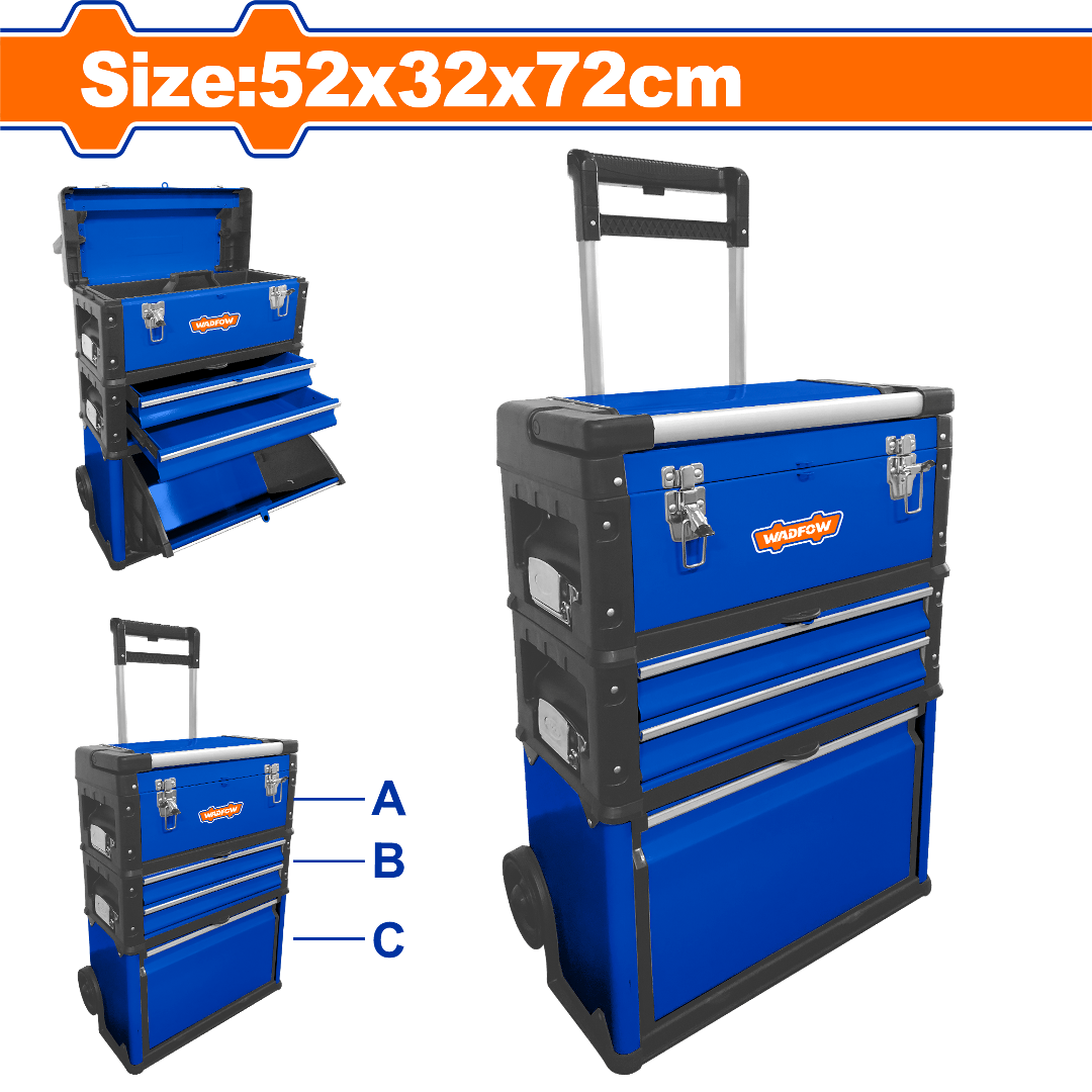 CARRO CAJA DE HERRAMIENTAS 3 PARTES METAL Y PLASTICO C RUEDAS WADFOW WTB6A72
