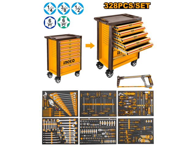 GABINETE CARRO DE TALLER 7 GABINETES C/ 328 HERRAMIENTAS HTCS273281 INGCO
