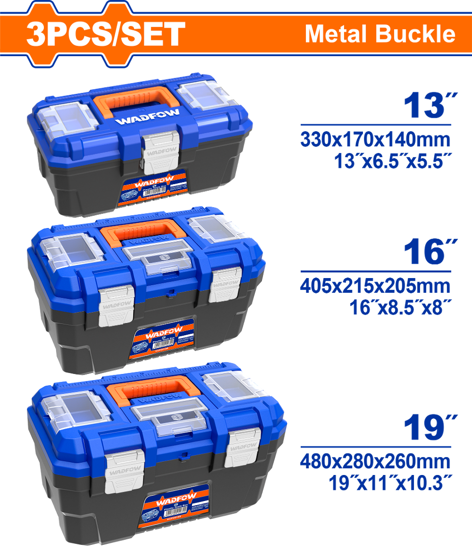 SET X 3 CAJAS DE HERRAMIENTA 13" 16" 19" BROCHE METALICO WADFOW WTB4103