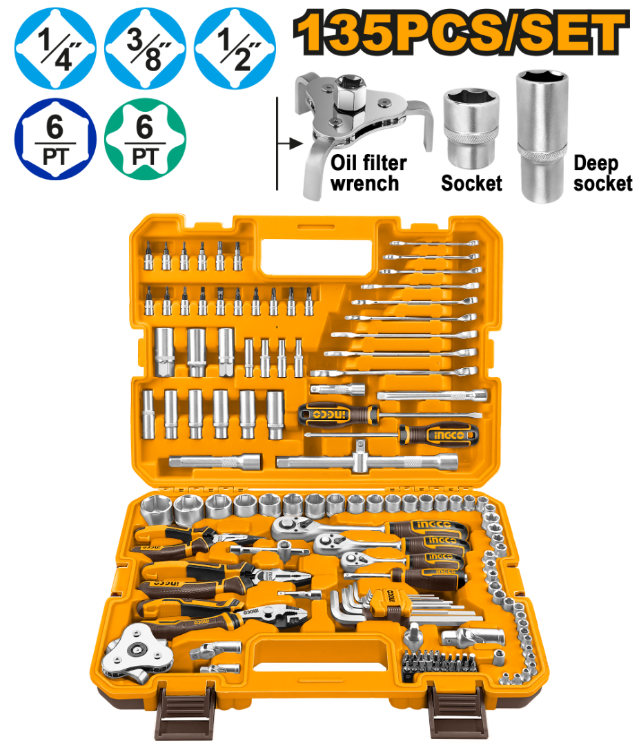 SET X135 HERRAMIENTAS COMBINADAS C/DADOS, LLAVES, PUNTAS Y ACCESORIOS EN VALIJA PLASTICA INGCO HKTHP21351