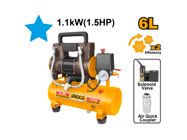 COMPRESOR 6LT 1.5HP  LIBRE DE ACEITE BAJO RUIDO INGCO ACS111062