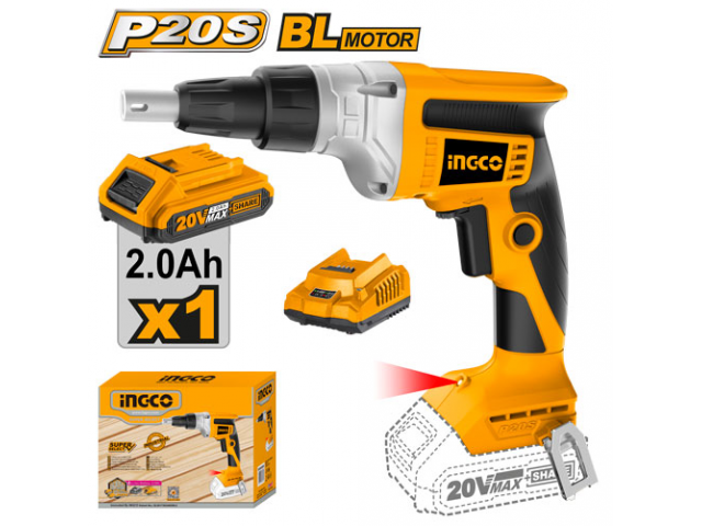 ATORNILLADOR A BATERIA 20V P YESO DRYWALL C BAT Y CARG INGCO CDSLI204200