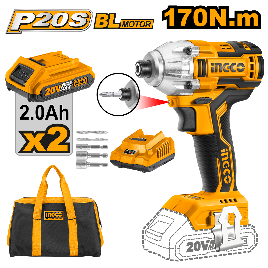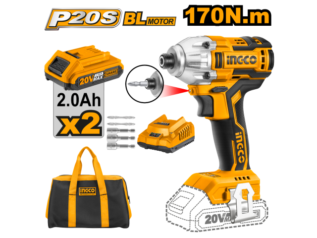 ATORNILLADOR DE IMPACTO 1/4 A BATERIA 20 VOLT P20S INGCO CIRLI2002 C 2BAT BRUSHLESS