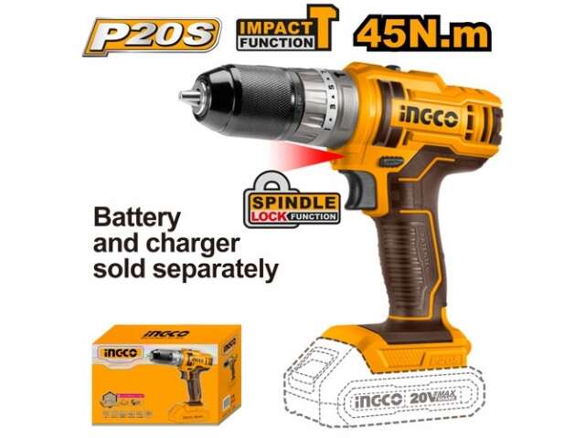 ATORNILLADOR PERCUTOR A BATERIA 20V P20S SIN BAT SIN CARGADOR CIDLI201455 INGCO