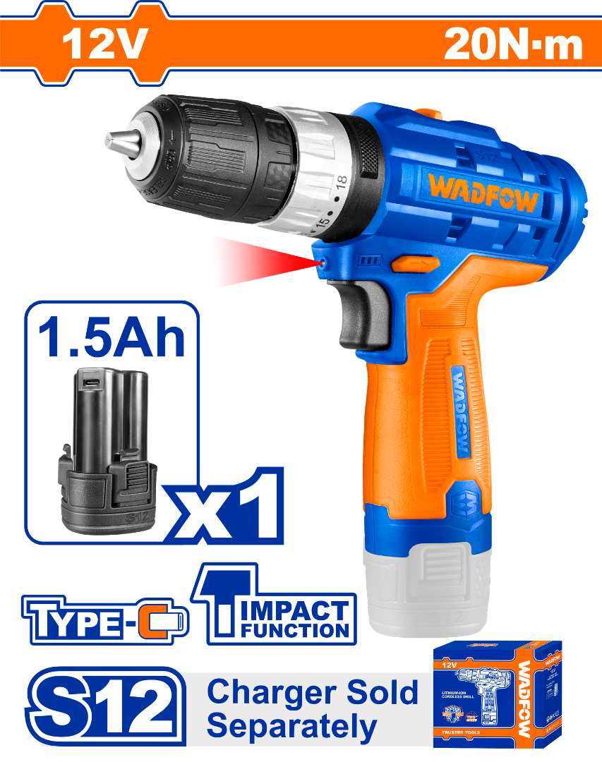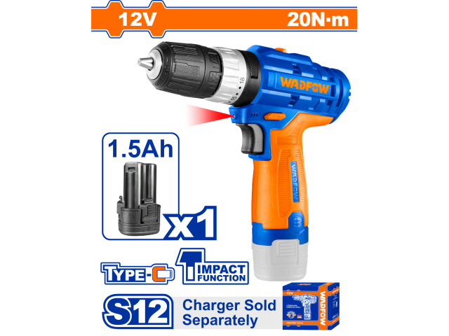 ATORNILLADOR PERCUTOR BATERIA 12V 20NM TIPO C S12 WADFOW WCDS540