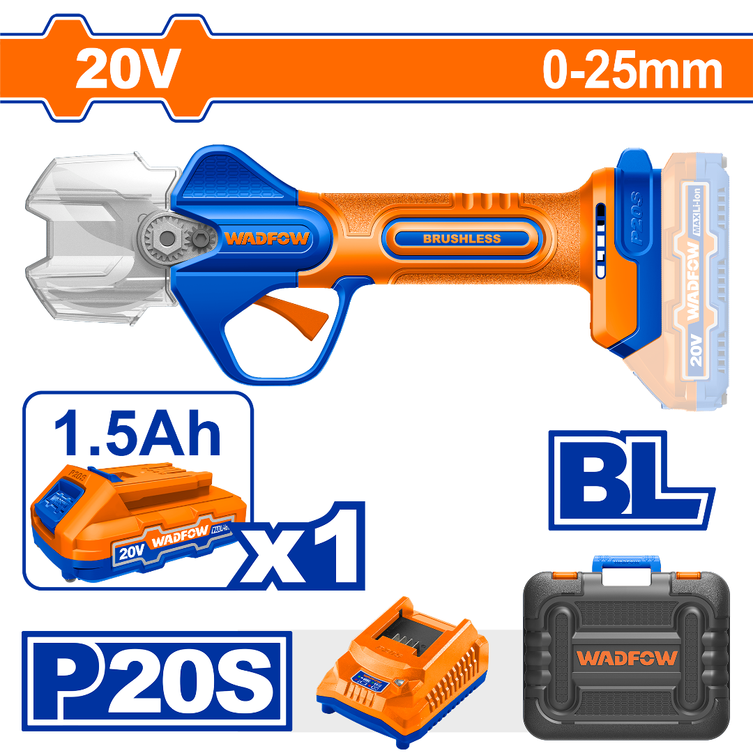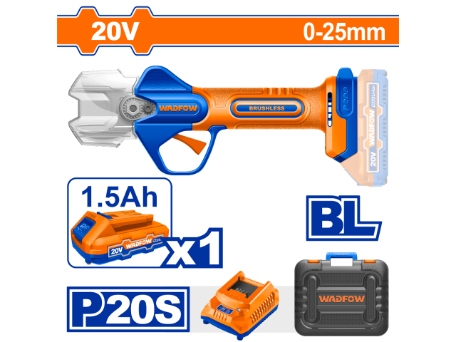 TIJERA DE PODA A BATERIA 20V P20S 0-25MM WADFOW  CON WJFPB25 CARG CON BAT + VALIJA