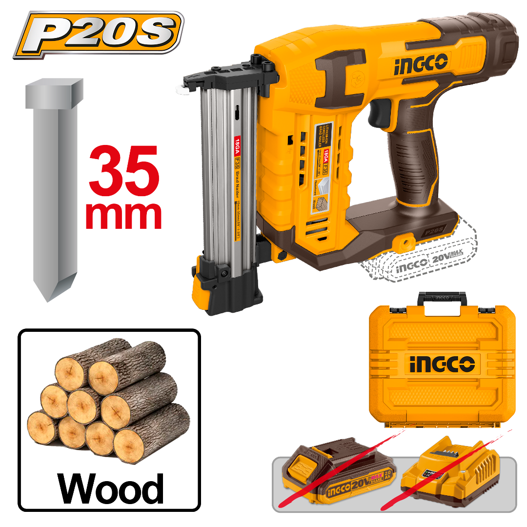 CLAVADORA A BATERIA 20V P20S 35MM MADERA SIN BATERIA SIN CARG + VALIJA INGCO CBNLI3505
