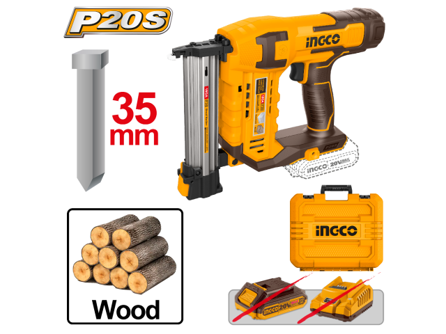 CLAVADORA  A BATERIA 20V P20S 35MM MADERA SIN BATERIA  SIN CARG + VALIJA INGCO CBNLI3505