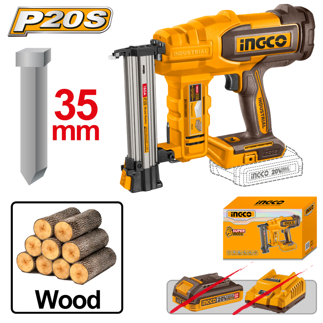 CLAVADORA A BATERÍA P20S 20V 35MM C/ACCESORIOS INGCO CBNLI2005