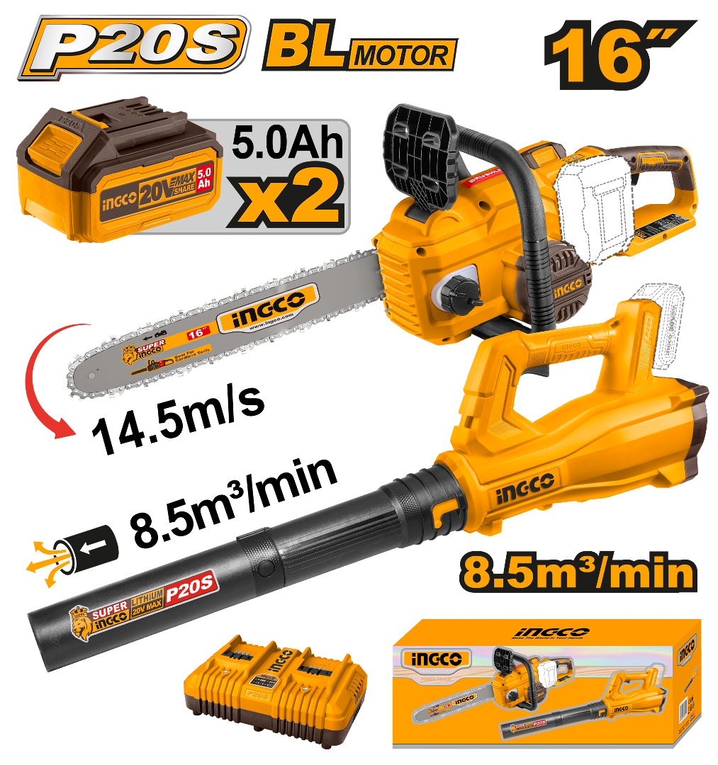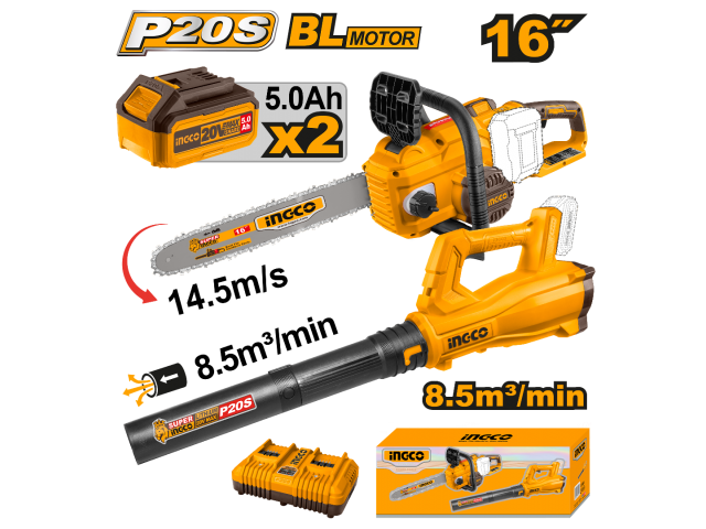 COMBO MOTOSIERRA A BATERIA 20V 16" (CGSLI40168) + SOPLADORA A BATERIA 20V (CABLI20323) P20S INGCO - COSLI240463