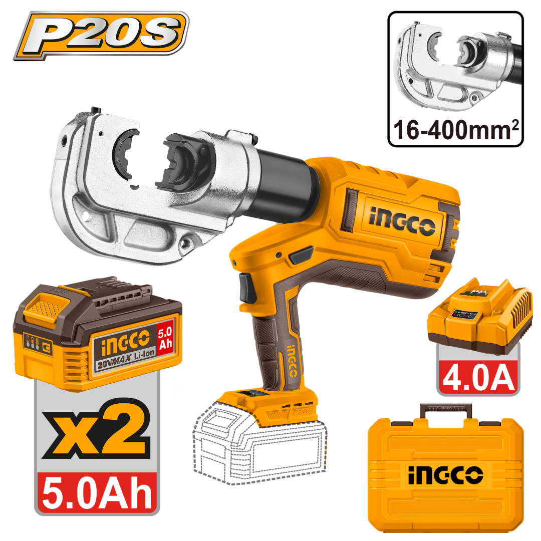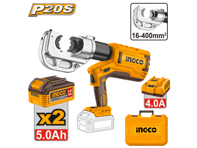 CRIMPEADORA HIDRAULICA A BATERIA 20V P20S C/2BAT, CARGADOR Y VALIJA INGCO CTLI2005