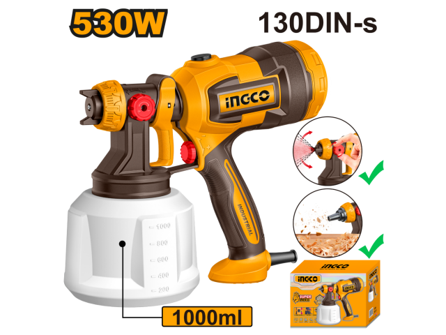 EQUIPO PISTOLA DE PINTAR ELECTRICA 530W TACHO PLASTICO 1000ML INGCO SPG4506