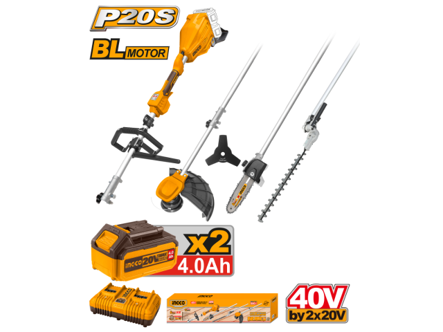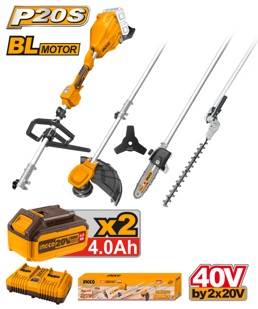HERRAMIENTA MULTIFUNCIÓN DE JARDÍN A BATERÍA 4 EN 1 BRUSHLESS MOTOR P20S 40V C/2 BAT + CARGADOR DOBLE + ACCESORIOS
