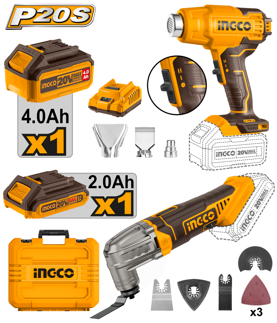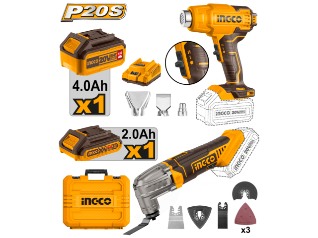 KIT 20V P20S PISTOLA DE CALOR + HERRAMIETA MULTIFUCION C/CARG C/BAT