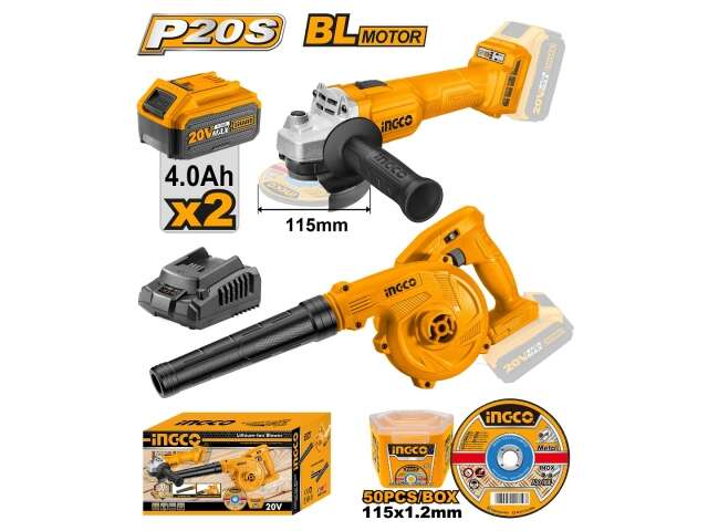 SUPER COMBO AMOLADORA 20V + SOPLADORA + DISCOS COSLI2211315 INGCO