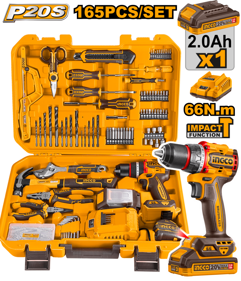 KIT ATORNILLADOR PERCUTOR 20V (CIDLI20035) EN VALIJA C/BAT Y CARGADOR + 165 HERRAMIENTAS