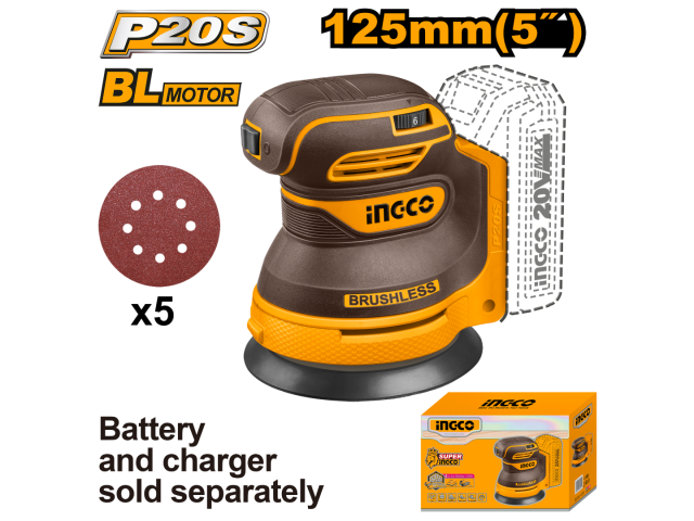 LIJADORA ROTO ORBITAL A BATERIA P20S 20V CON 5 LIJAS, S/BAT, S/CARG INGCO CROSLI2002