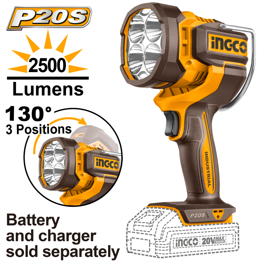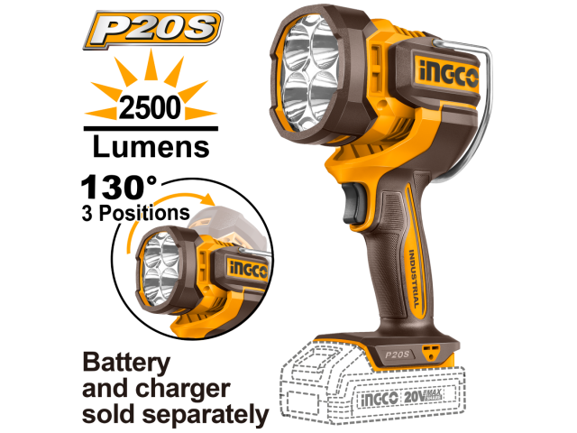 LINTERNA A BATERIA P20S 20V 2500 LUMENS SIN BAT SIN CARGADOR INGCO CWLI20885