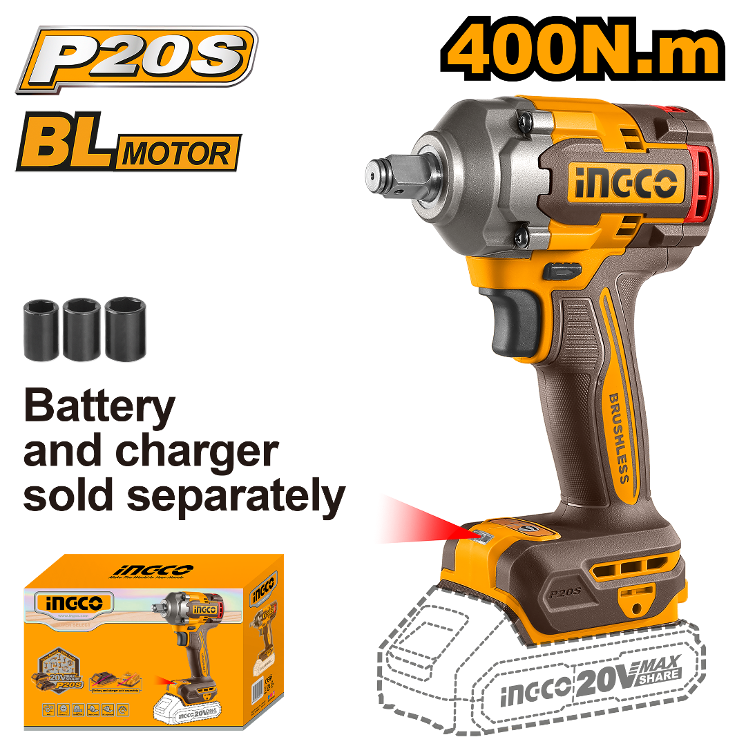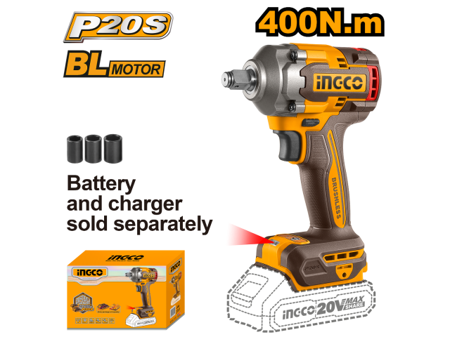 LLAVE DE IMPACTO A BATERIA 400NM 20V P20S SIN BAT SIN CARG INGCO CIWLI20401