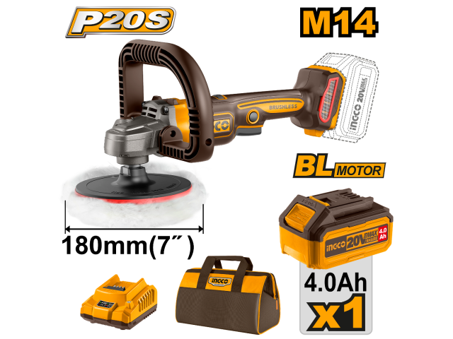 LUSTRA PULIDORA A BATERIA 7" 20V P20S BRUSHLESS C/1 BAT + BOLSO DE HERRAMIENTAS APLI20181 INGCO