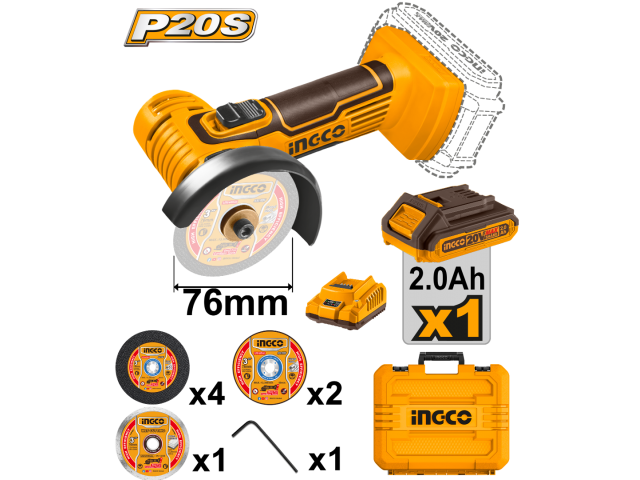 MINI AMOLADORA A BATERIA 3" 20V P20S MULTIFUNCION CON BATERIA + CARGADOR + VALIJA INGCO CAGLI76012