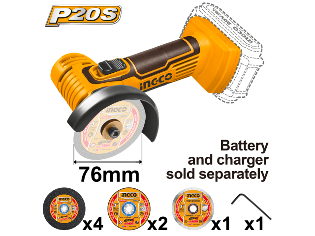 MINI AMOLADORA A BATERIA 3" 20V P20S MULTIFUNCIÓN SIN BAT SIN CARG INGCO CAGLI7601