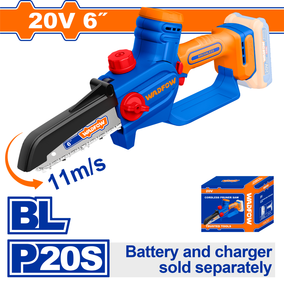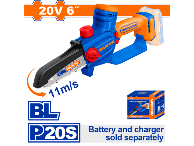 MINI MOTOSIERRA 6"" A BATERIA P20S 20V BRUSHLESS C/CADENA + VAINA + LLAVE INGLESA SIN BAT SIN CARGADOR WADFOW WCLP560