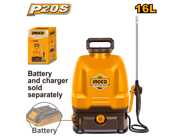 PULVERIZADOR FUMIGADOR DE MOCHILA 16LTS A BATERIA 20V P20S S/BAT CSPLI2016 INGCO