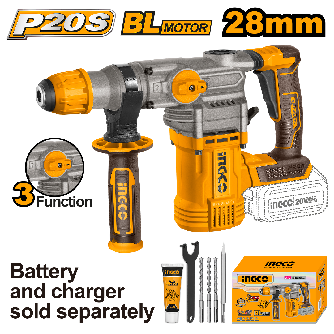 ROTOMARTILLO A BATERIA 20V 28MM INGCO CRHLI20288 S/BAT S/CARG
