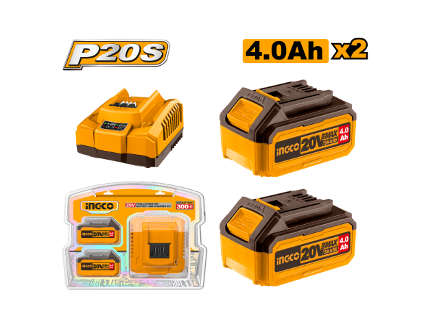 SET X 2 BATERIAS 20V 4AMP + 1 CARGADOR INGCO FBCPK1424