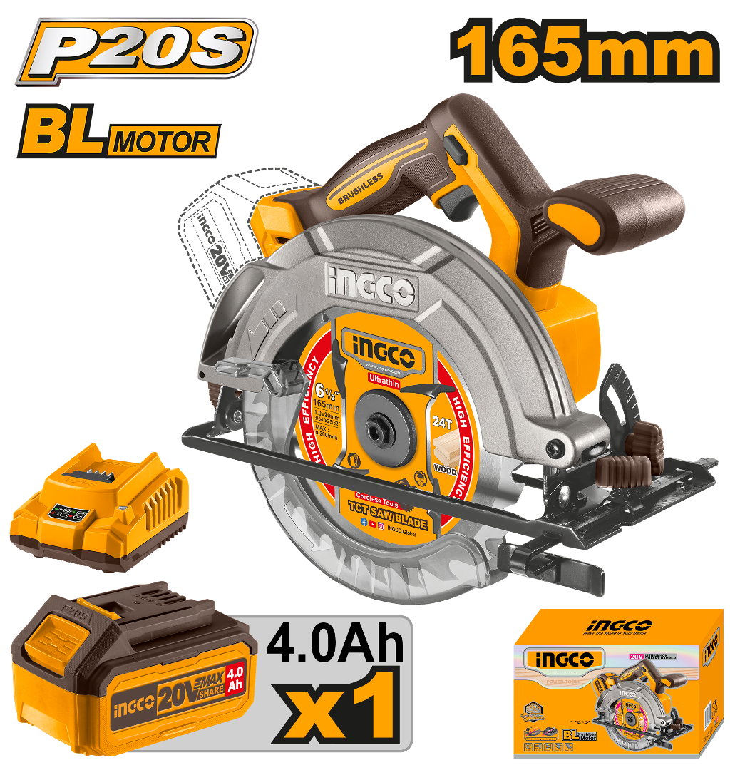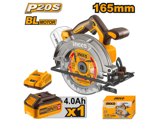 SIERRA CIRCULAR A BATERIA 20V BATERIA P20S 165MM BRUSHLESS MOTOR CON CARG X1 BAT X1 INGCO CSLI16521