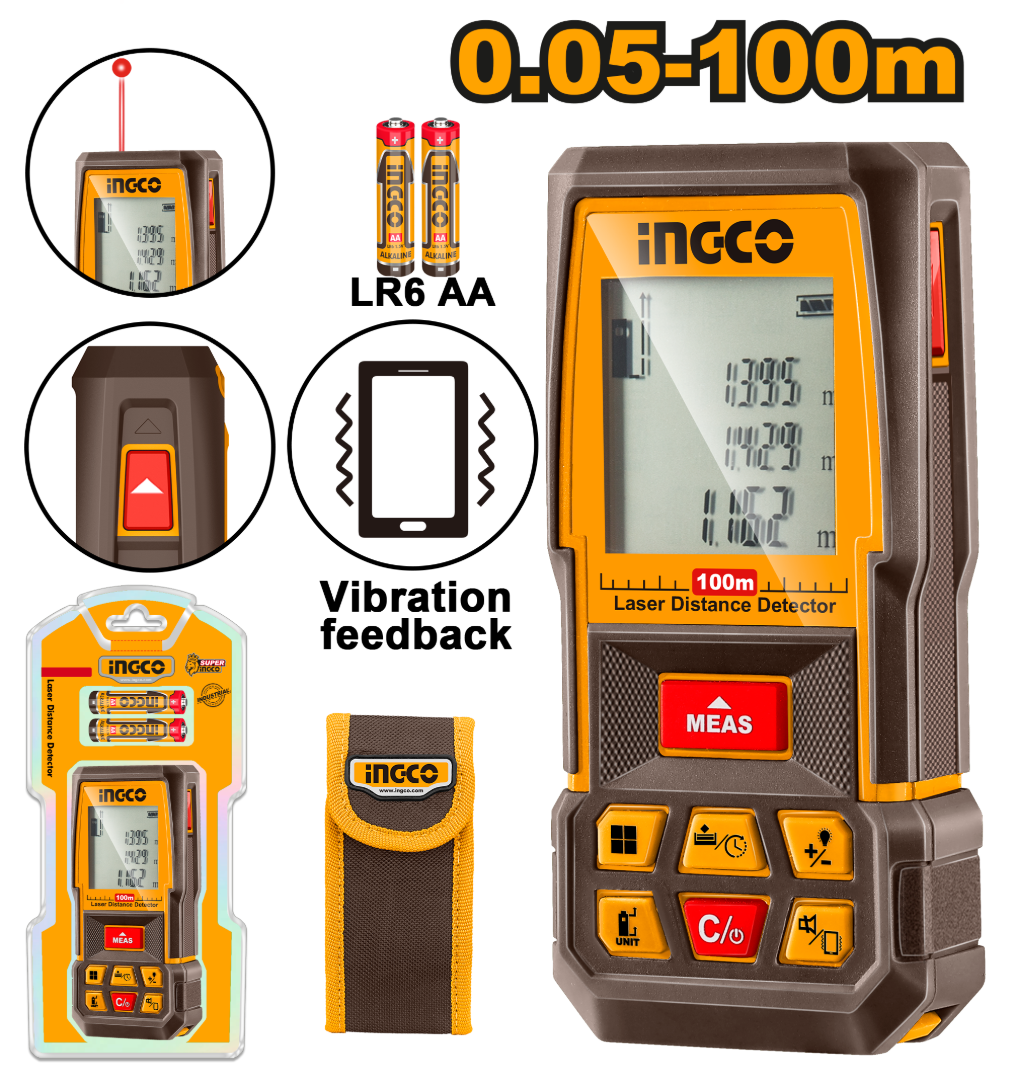 MEDIDOR DE DISTANCIA LASER 0.5 - 100MTS C/ESTUCHE INGCO - HLDD1008